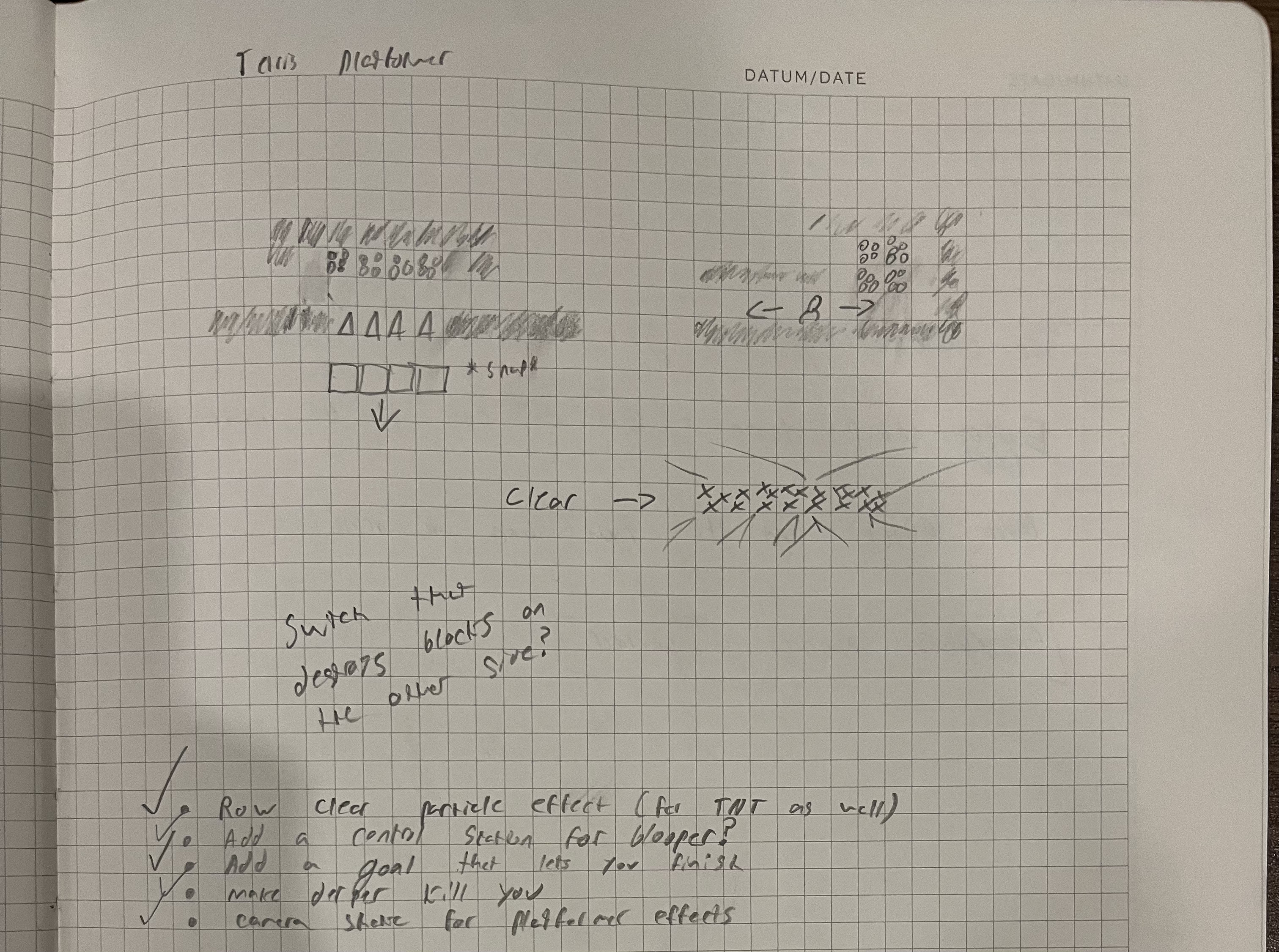 I did manage to include the “current piece appears in the platformer” idea via the computer mechanic eventually - but it sidesteps the physics problem since you can’t control the player while the current piece is moving within the platformer.
