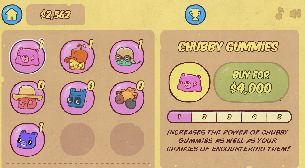 - For upgrades with many levels, like strength or height, I did a bunch of number tweaking to try to ensure that an average run would yield enough currency that you’d be able to buy the next incremental upgrade.